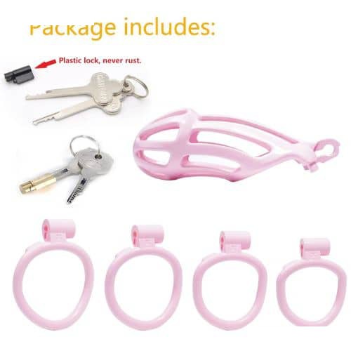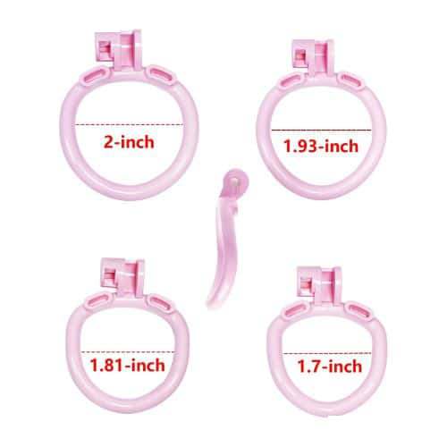 Male Chastity Cage with Lock & 4 Rings Nylon - Pink
